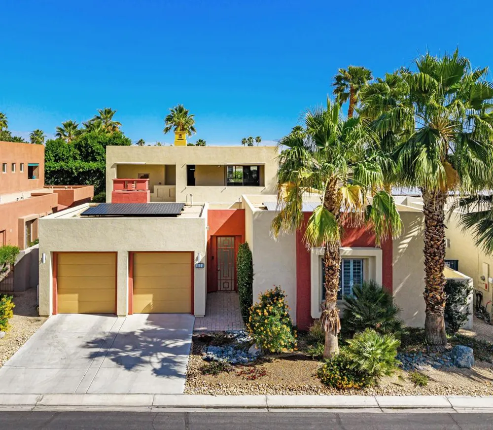 Representing one of the best overall values in desirable South Palm Springs- Presenting an inviting contemporary home in the highly sought-after Luminaire community--an intimate enclave in South Palm Springs consisting of pueblo-inspired desert modern homes. Effortlessly stylish, this home embodies the essence of the Palm Springs lifestyle. Entering through its charming courtyard with a fireplace and fountain sets the tone. Inside, you'll discover a beautifully crafted modern residence with clean architectural lines, sleek finishes, and nearly 3,000 square feet of well-appointed living space that is highlighted by modern tile flooring, high ceilings, and natural light. At the heart of the home is a spacious gourmet kitchen with bright Cambria Quartz countertops, expansive cabinetry, gas cooktop, built-in stainless-steel appliances, and a generous island -- an ideal workspace for cooking as well as for entertaining. The spacious dining area overlooking the courtyard flows seamlessly into the Great Room with a gas fireplace, all overlooking the private backyard with pool and spa. The outside living area is the perfect place to relax or entertain. Step outside into the cool shade of remote controlled Sunbrella awnings and slip into your private sparkling saltwater Pebble Tec pool & spa or fire up the built-in BBQ. One of the home's standout features is the spacious upstairs guest casita, offering a mini kitchen, bath, sleep number Murphy bed and a private patio with the best mountain views in all of Luminaire. This exceptional property blends architectural distinction with modern comfort--offering the ultimate Palm Springs retreat. Additional features include a spacious trellised courtyard with built-in lighting and misting system, fully warranted solar system & Apex water conditioning system. Please Note: Google Maps Street View for this street is Inaccurate (use Google Earth)